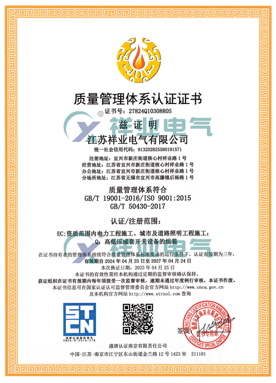 欢迎来到江苏祥业电气有限公司官方网站!主要经营:高低压成套配电柜,用电安全托管,电气火灾联网监测,电力工程施工总承包